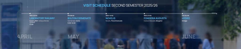 The visits include the Railway Laboratory of our department and companies operating in the foundry, aluminum extrusion, and food production sectors.